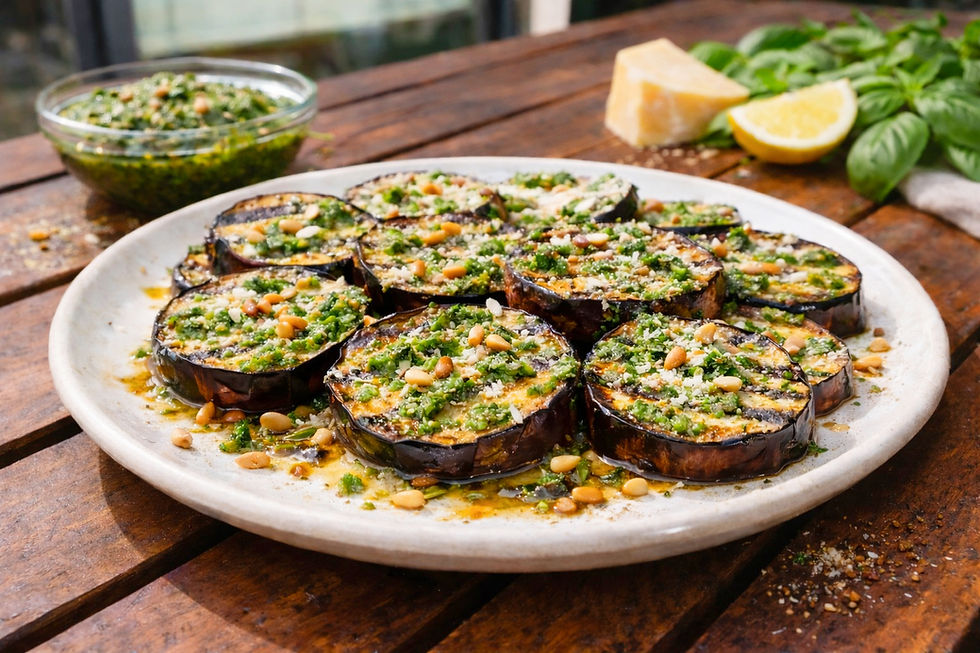 La cuisson rapide au barbecue saisit la chair tout en lui gardant son moelleux, offrant un contraste parfait avec le croquant du parmesan.